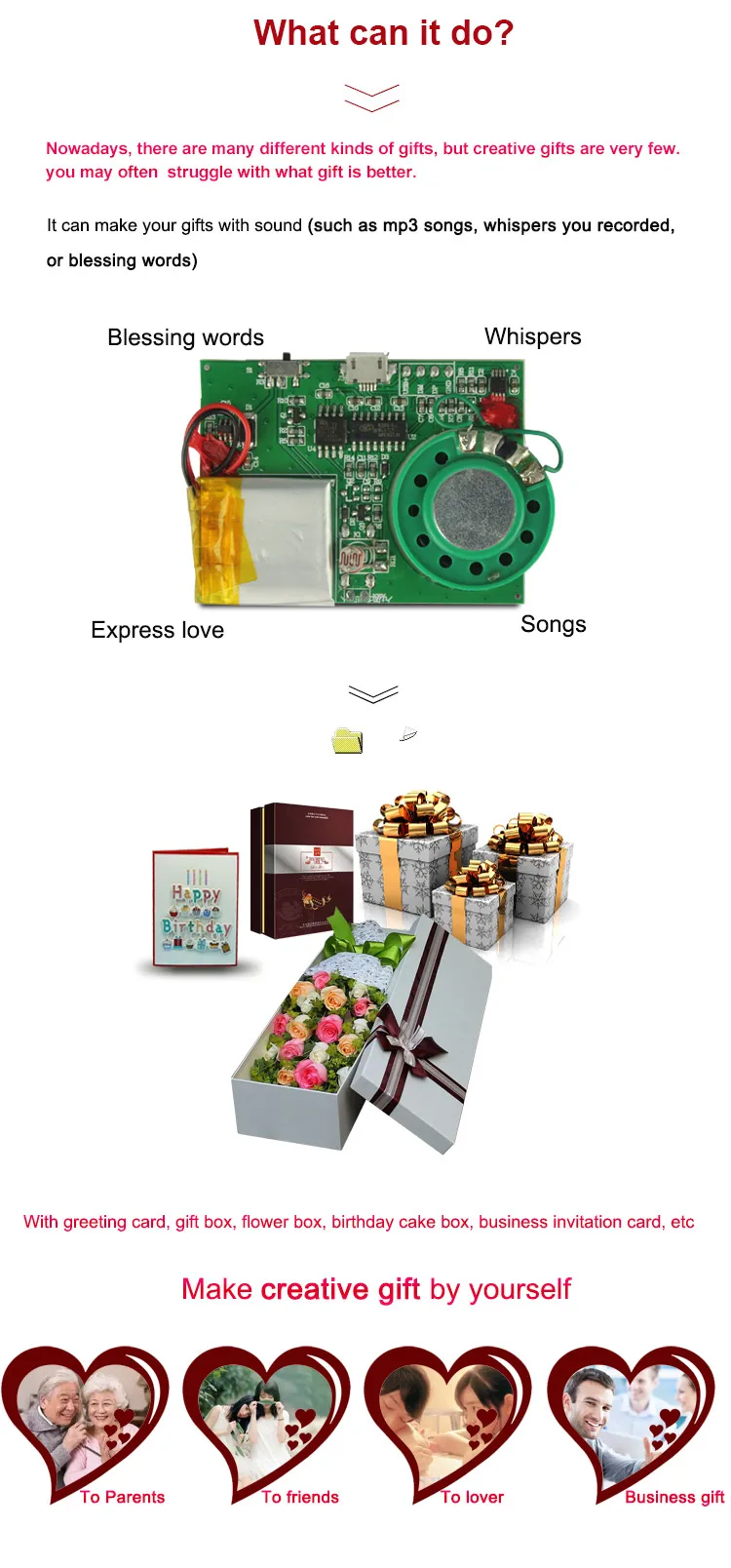 Suitable for greeting cards, brand/product promotion, birthday cards, toys, jewal/gift box, dolls and gift etc.