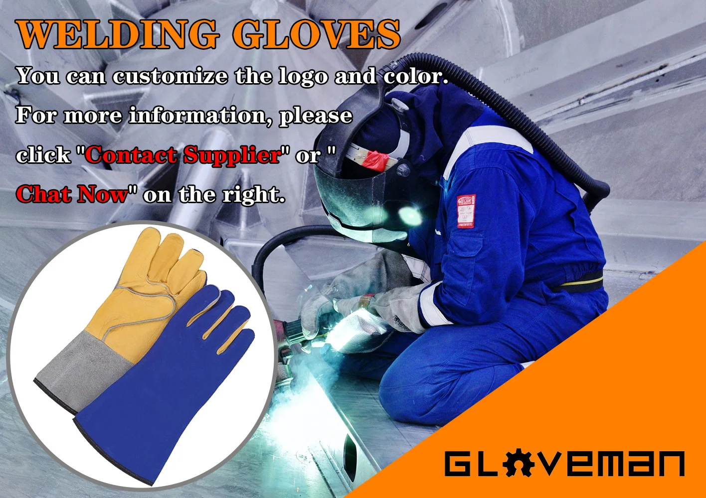GLOVEMAN custom long cowhide heat resistant fire proof construction industrial safety work tig cow split leather welding gloves
