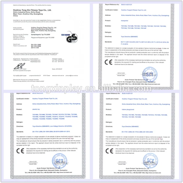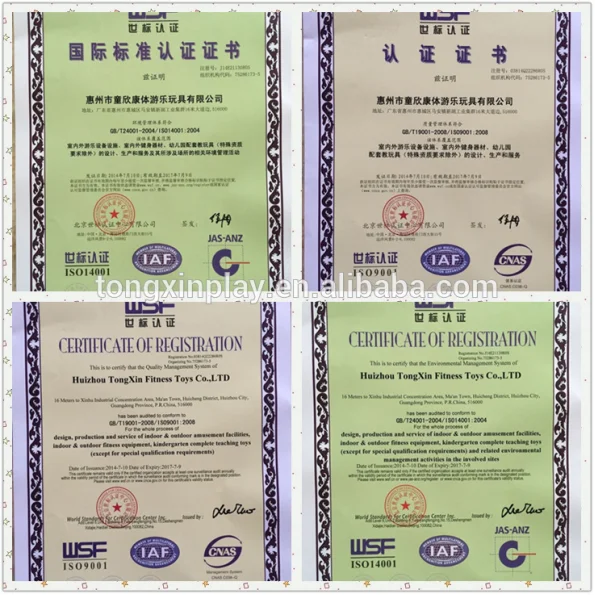 1.Our company is the firstenterprise in the industry gets award of GS Quality Tag according to European En 1176 test standards Germany TUV Rheiland.