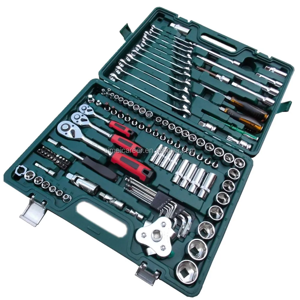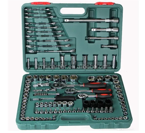 121-piece Socket Ratchet Wrench Set is suitable for mining industry machine, metallurgical machinery, shipbuilding industry, power sector and auto repair etc., including all the hand tools that is needed, with high quanlity by using chrome vanadium steel material, surface do the mirror polish, comparted in a hard blow case, portable to take and use.
