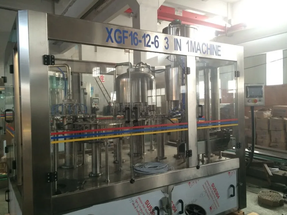 This series of machines integrate washing, filling and capping, it can be used for wine filling of production line for glass bottle. The whole working process is automatic. The advanced OMPON programmed controller( PLC) is adopted to control the machine working automatically while transducer is used in the bottle.