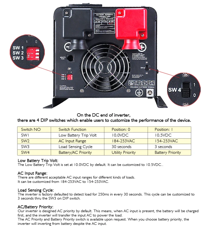 | Battery Initial Voltage for Start Up | 10-15.7V for 12V( *2 for 24V, *4 for 48V) | |||||||