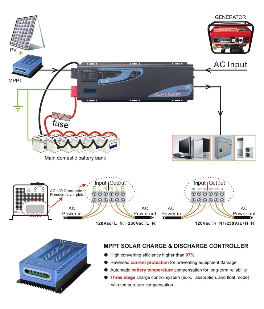 | Bypass & Protection | Input Voltage Waveform | Sine wave (Grid or Generator) | ||||||
