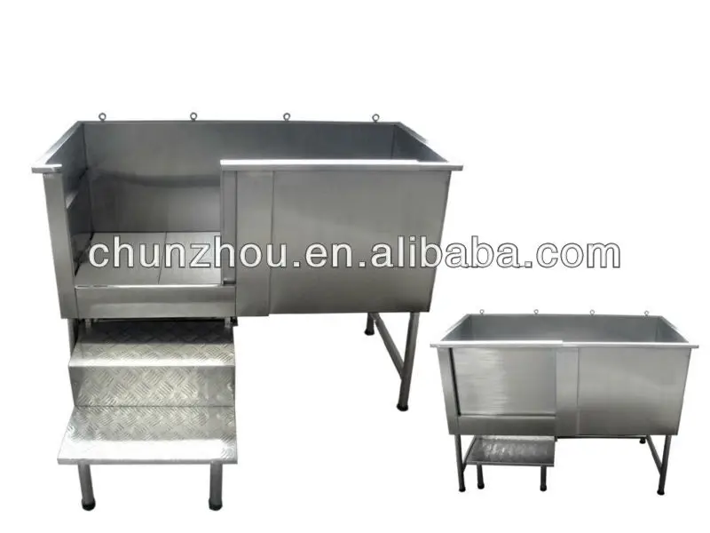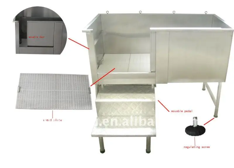 H-104 are stainless steel bath-tub, with high quality but reasonable price. With good sealing function, for shower purpose only, With adjustable screws on bottom, the bah-tub can stand stably on different floor. With the rings on the edge of the bath-tub, it can well hold the pets when the groomers shower the pets.