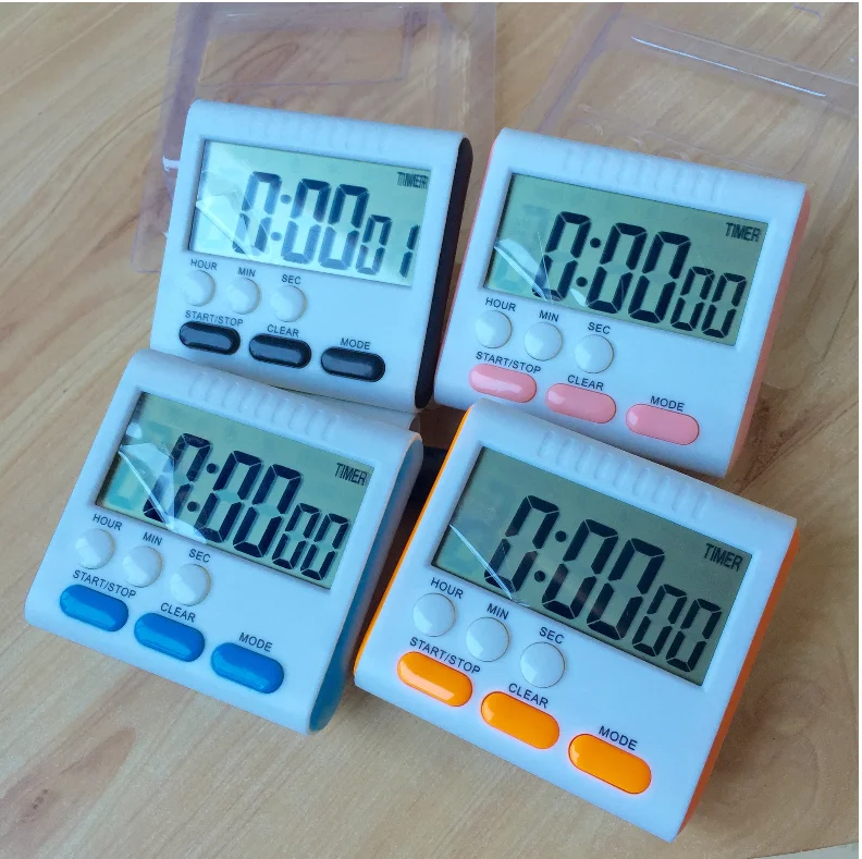Features 1.Easy to read , Large digits . 2. Works as a clock or a timer and could keep the memory for previous counting time 3. Magnet on the back of unit 4. Loud alarm last 60 seconds . 5. Timer max 23 hours 59 minutes 59 seconds 6. Size : 74X78MM 7. Power : 1XAAA