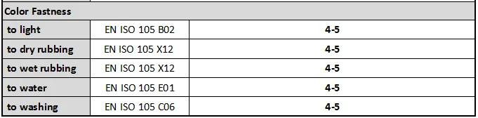 Color fastness: 4-5