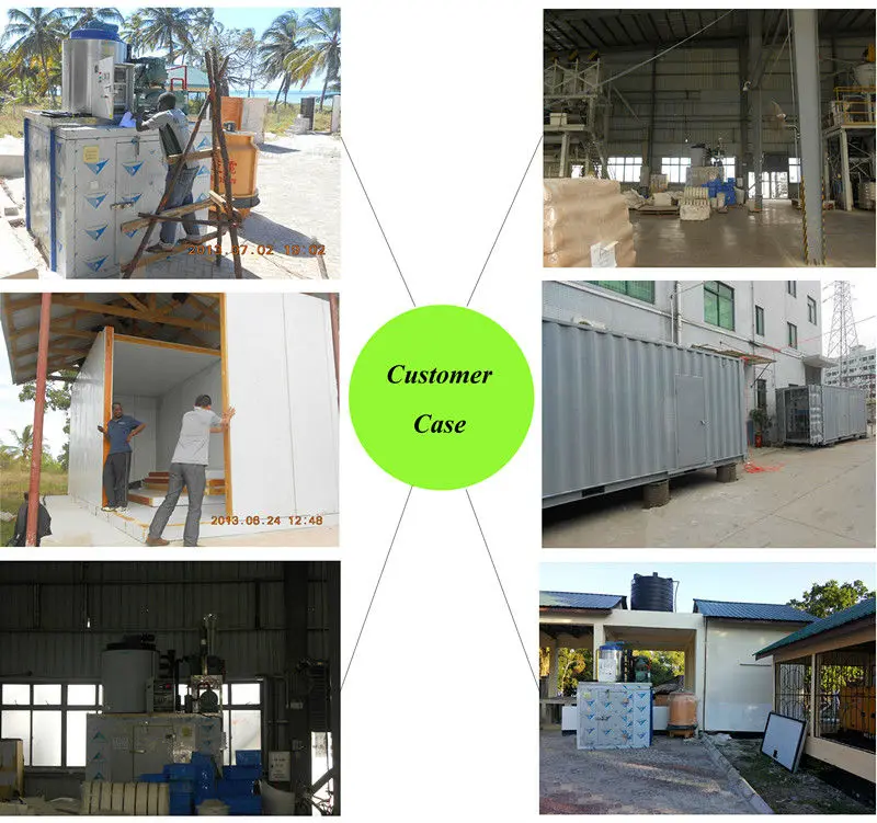 Flake ice can become water quickly through the rapid heat exchanging with products, and also supply the moisture for products to be cooled.