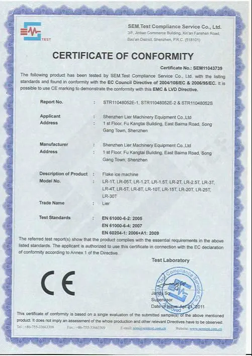 The producing of flake ice is very economical, it only requires 1.3RT refrigerating effect to make 1 ton of ice from 16C water.