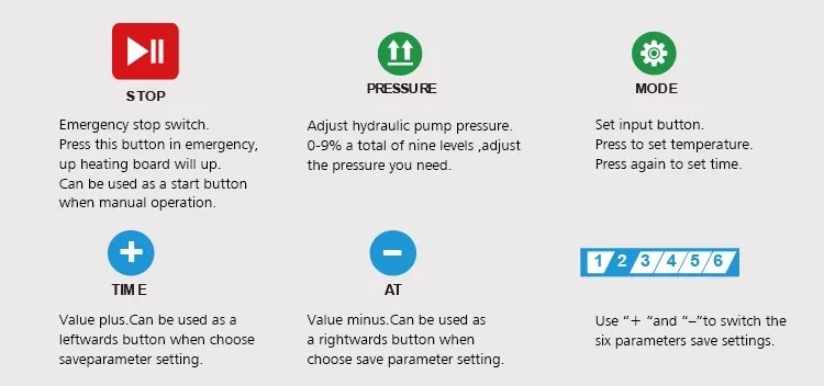 ◆Very large format ◆Nine pressure selection, hydraulic system ◆Six save settings, fast switch ◆Aluminum alloy material, safe and durable ◆Intelligent temperature control ◆Simple operation, good stability ◆Factory direct sales, the market response is good | ||