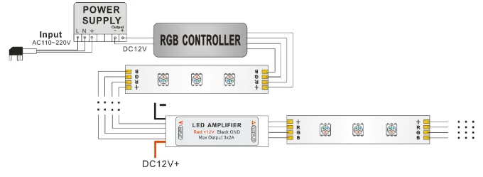 DC5-24V 144W-12V 288W-24V LED Mini RGB Amplifier with RED & Black Wire
