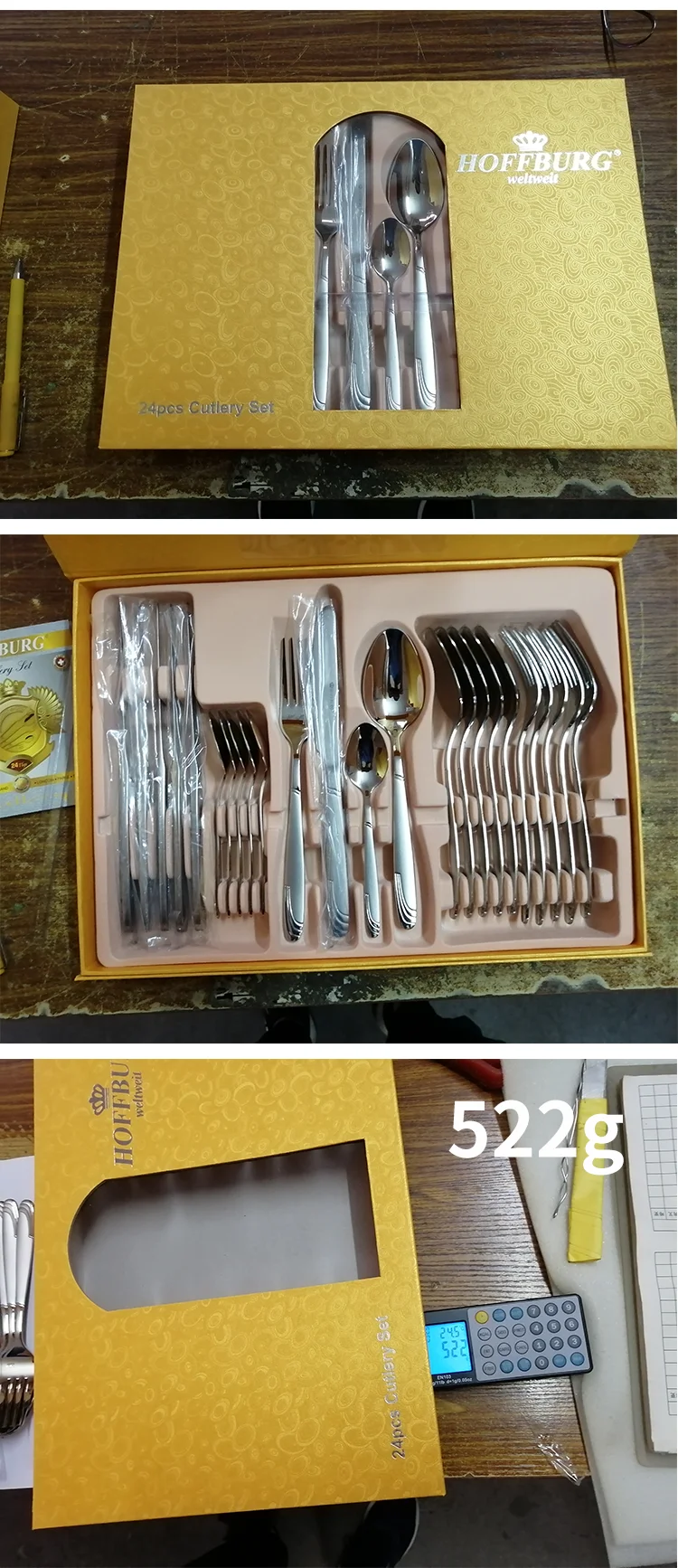 Specification | dinner knife 6pcs dinner spoon 6pcs dinner fork 6pcs tea spoon 6pcs | ||||