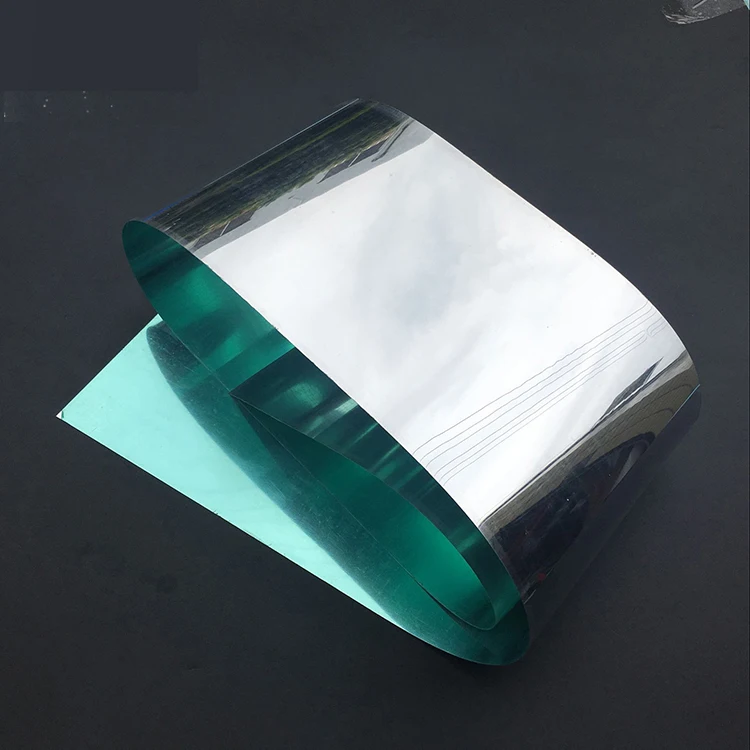 Pet chemical called polyester material, for coil, double-sided mirror, security is not broken, the most convenient transportation, can provide customers with electroplating city double-sided adhesive mirror, such as regular width of 0.5 meters, 1.0 meters, 1.26 meters, the thickness of 0.1 mm, 0.15 mm, 0.188 mm, widely used in bags handbags, toys, decoration, led reflective mirror decoration, wedding stage carpet, etc.