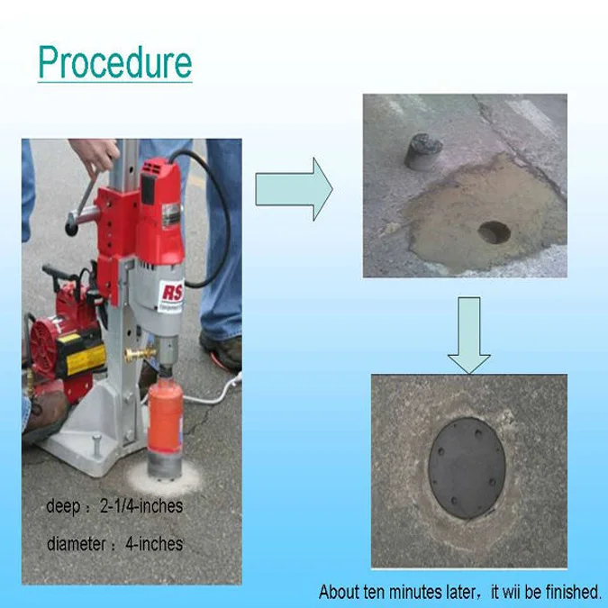 1.Drill a small hole of Φ12/D10cm