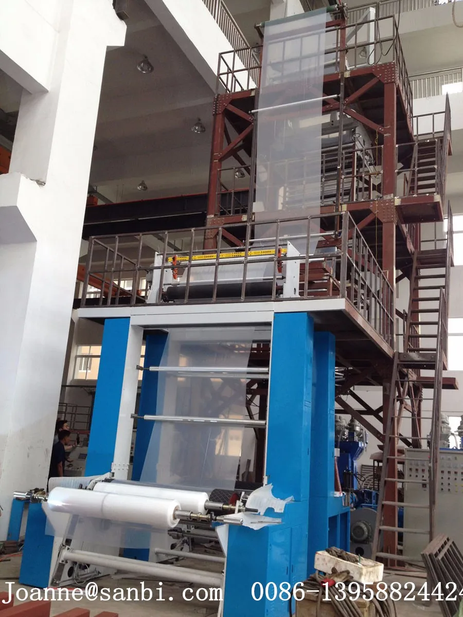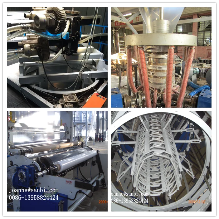 Haul-off unit is oscillating reverse by horizontal±180。.Its structure is reasonable, so it economizes lots of energy and it is easy to maintain. By means of the reversing haul-off unit, films can be produced without requiring rotating die head, so the structure of die head is simplified. Reversing haul-off unit eliminates many problems of ling channel for the rotating die head, difficult sealing for the melt, compound leakage being easy, unsymmetrical heating, difficult maintenance, macro film tolerance and so on Haul-off unit reduces the degree of difficulty for recipe of the multi-layer co-extruded product and production technical processing control, if the blowing film line is with IBC (Internal Bubble cooling system), it can produce film with the quality of more high-grade transparency and better all-round performance. The produced film is very flat, reel is high-quality by the use of reversing haul-off units. The film can meet the demand for the high-speed printing.