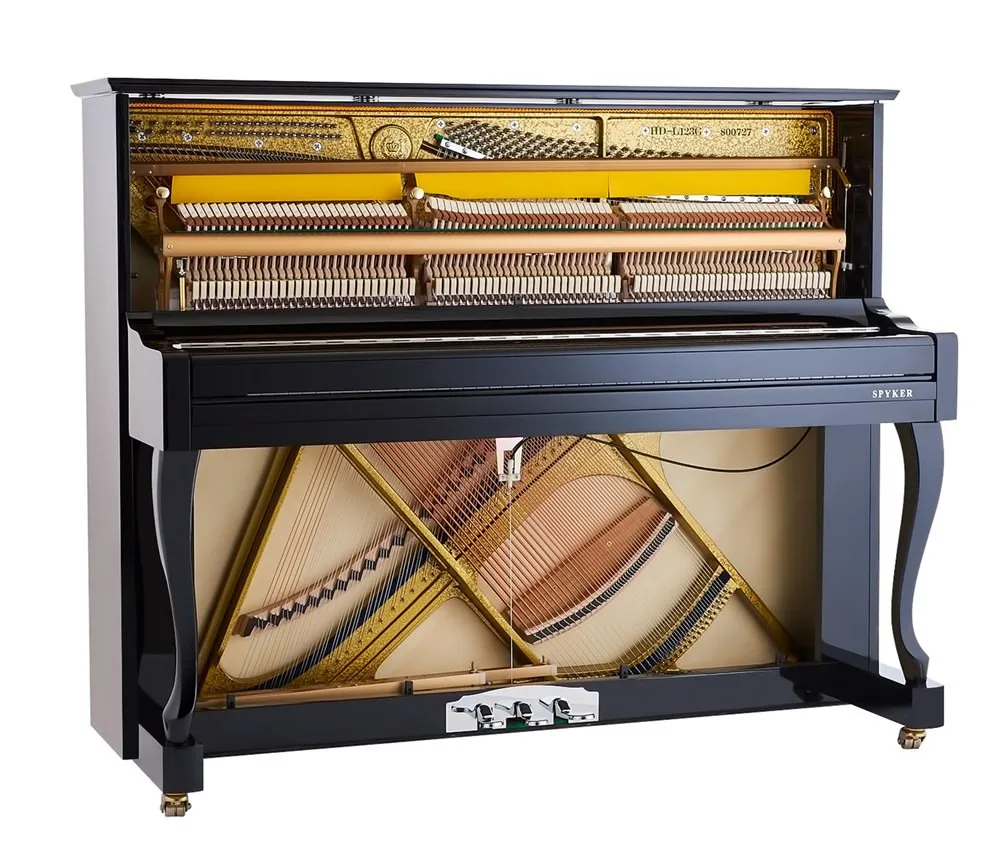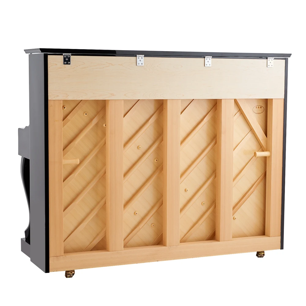 1.Keyboard: 88 keys spruce solid wood keyboard, weight balanced by adding lead, multilayer wood to avoid deformation, ivory white keys and brushed black keys.