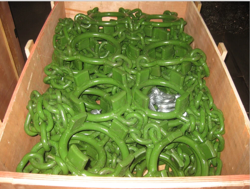 Skidder chains 1) Double rows Multi ring skidder chains 2) Material: Alloy steel 3) Heat treatment and carbonization treatment 4) Packing: in wooden caes or steel cages as per customers' requests. 5) 28Lx26-5/8 DRMTRA, Weight: 615KGS/PAIR, 16.9X30-16MM DRMTRA, Weight: 593Kgs/Pair, Other sizes available |