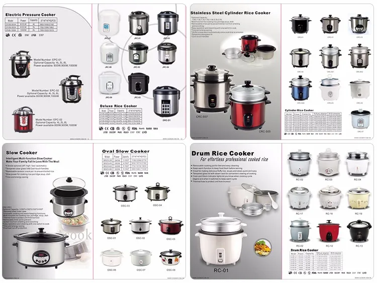 3) The company products have 50 varieties and the main varieties are: Rice Cooker, Electric Water Boiler, Electric Wok, Soybean Maker, Electric Oven, Slow Cooker, Electric Fan, Lamp, Pressure Cooker and Cook Wares etc, which are all with CB, CE, EMC, EMF, ETL, GS, LFGB, RoHs, SASO, UL certification.