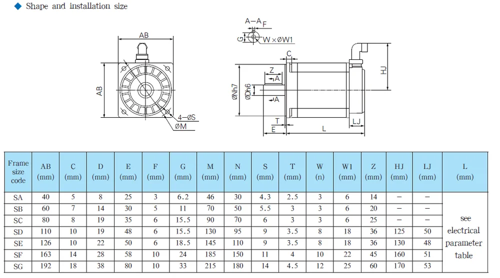 4 | Motor type code | S:natural cooling servo motor Z: Forced cooling permanent magnet servo motor | S series servo motor | |