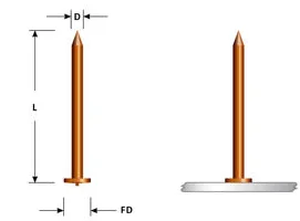 This type of Capacitor Discharge (CD) pin is welded through the insulation, allowing the fabrication to be done in one easy step. The head of the pin is attached to the nail, so there is no need to add a washer.
