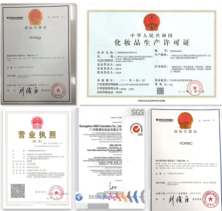 Q: what kind of the certification do you have ? A:we have certification for products , and we are ISO22716-2007/ISO9001- 2008/GMP certified factory