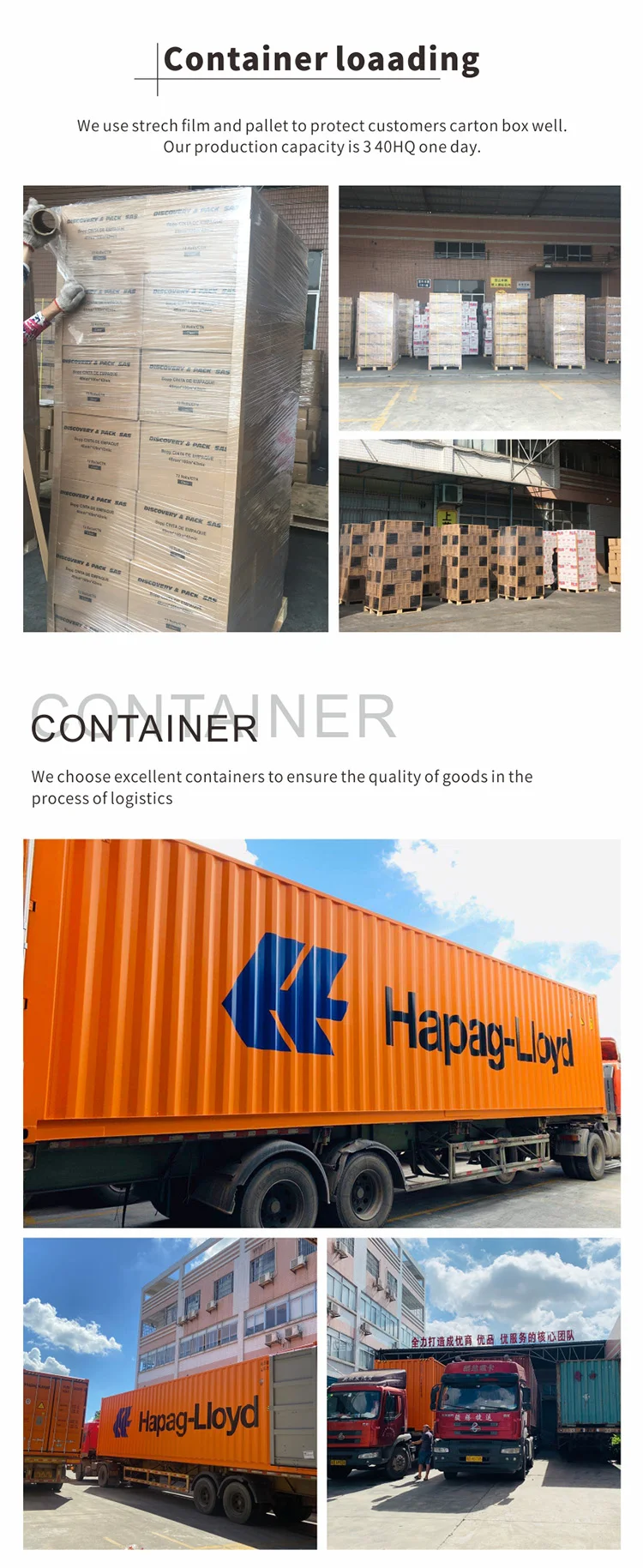 We send emails to your carrier in china to prepare the cargo shipment and pictures taken of goods and loading.