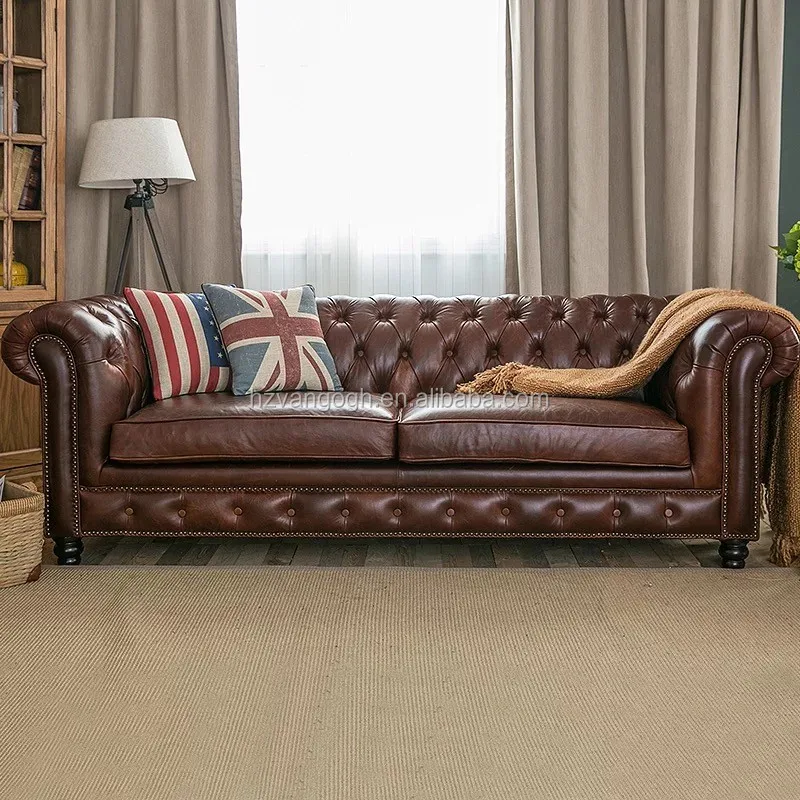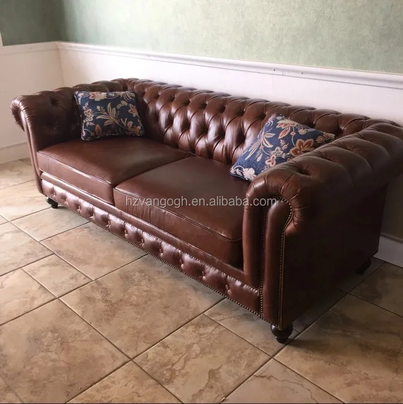 Antique French country style high quality leather sofa luxury french sofa set