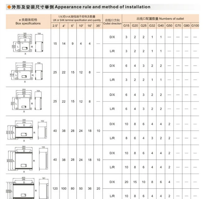 Rated Voltage | Dust-mark | Inlet thread | enclosure material | Ex-mark | Degree of protection | Erosionproofclass | cableouterline (mm) |
