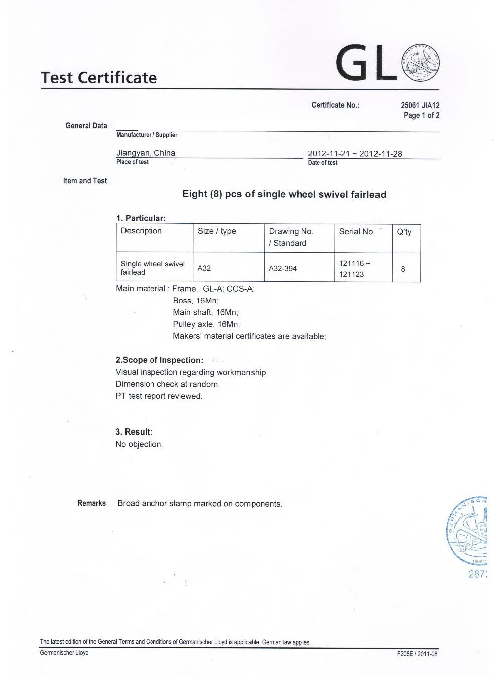Our aim is to provide the superior quality products, reasonable price and efficient and professional service. We can also provide ABS, LR, BV, GL, FNV, KR, NK, RINA,CCS certificate for our marine products.