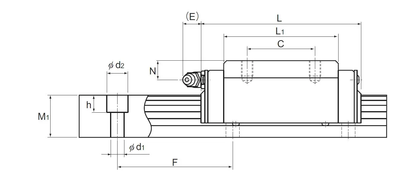 Model code | Height | Width | Length | Pitch | LM block Mass | ||