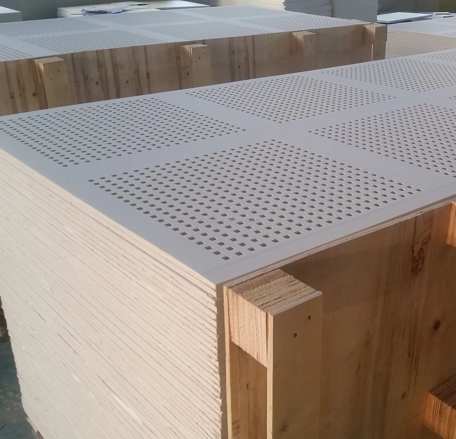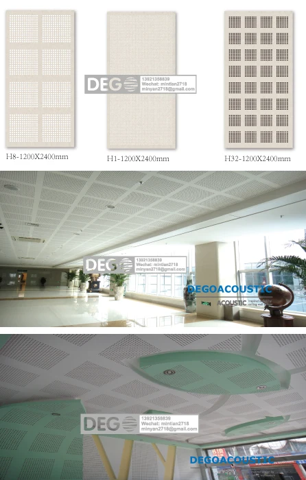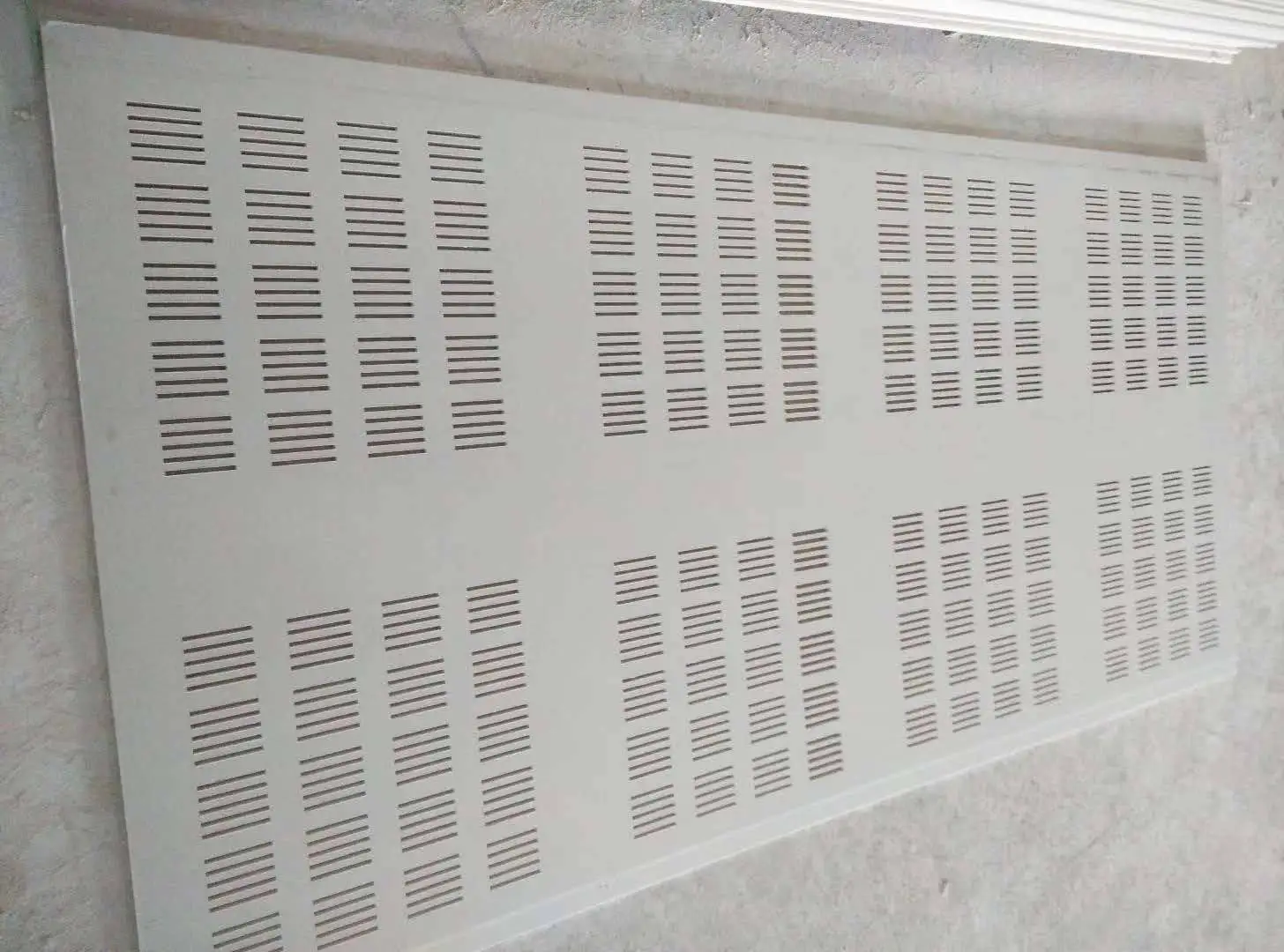 All ceilings in the Perforated Plasterboard ceiling have been designed for use on ceilings where an increased level of sound attenuation and a high level of aesthetic appeal is required. The design features 8 large rectangular groupings per sheet, each with 12X12mm square perforations at 25mm centres to provide an open area of 16%.
