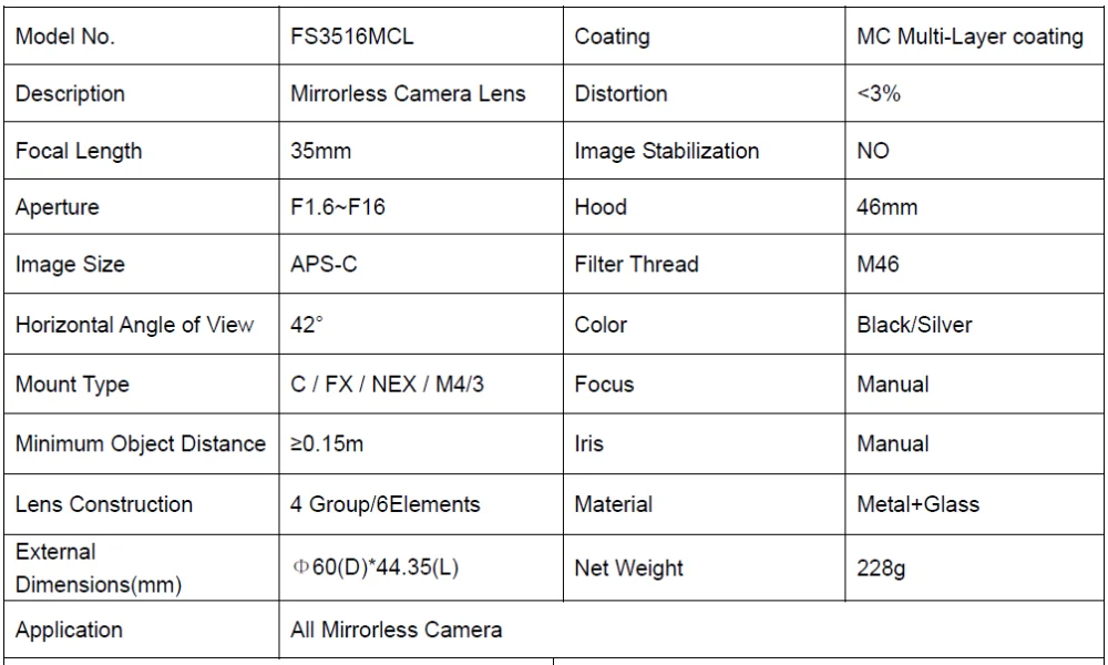 M7 Mount F2.0 Wide Angle Lens 2mm for VR camera Oculus
