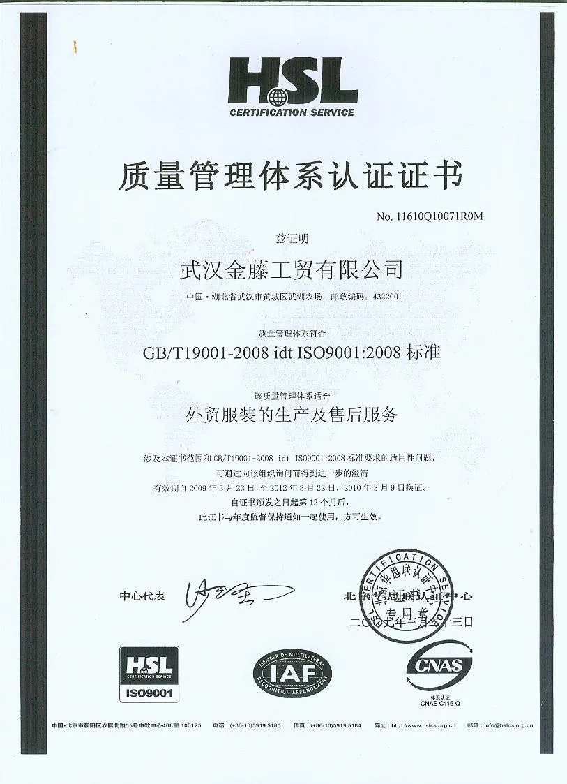 WUHAN JINTENG MANUFACTURING & TRADING CO.,LTD was founded in January 10, 2002, which is a specialized manufacturer for military & police garments and outdoor protective product. She covers an area of 7800 square meters, with 5600 square meters of production workshops and warehouses, Besides, she owns over two hundreds skilled workers and a large number of professional technology and management staff, which is equipped with modern equipment and advanced management mode,. Her annual capacity has reached nearly twenty million sets (pieces).