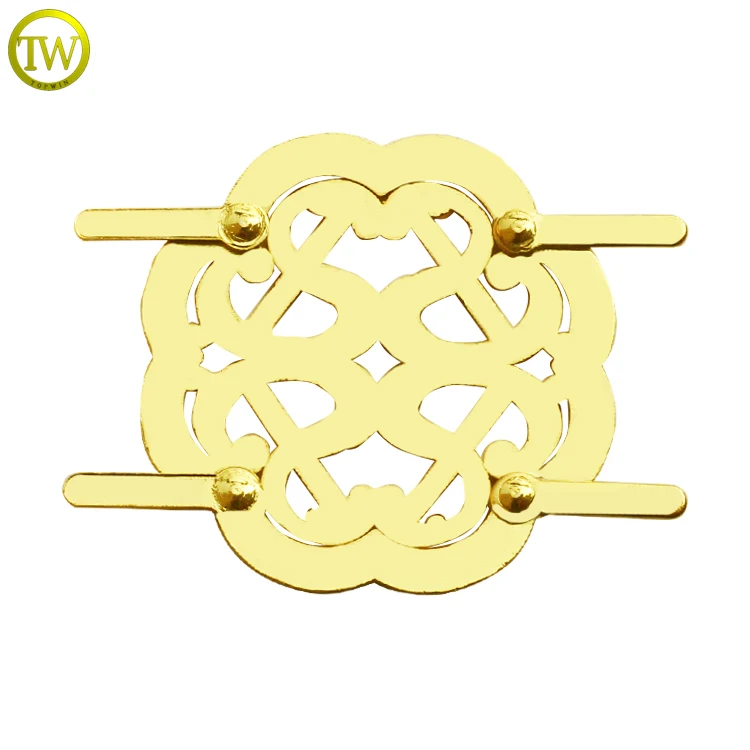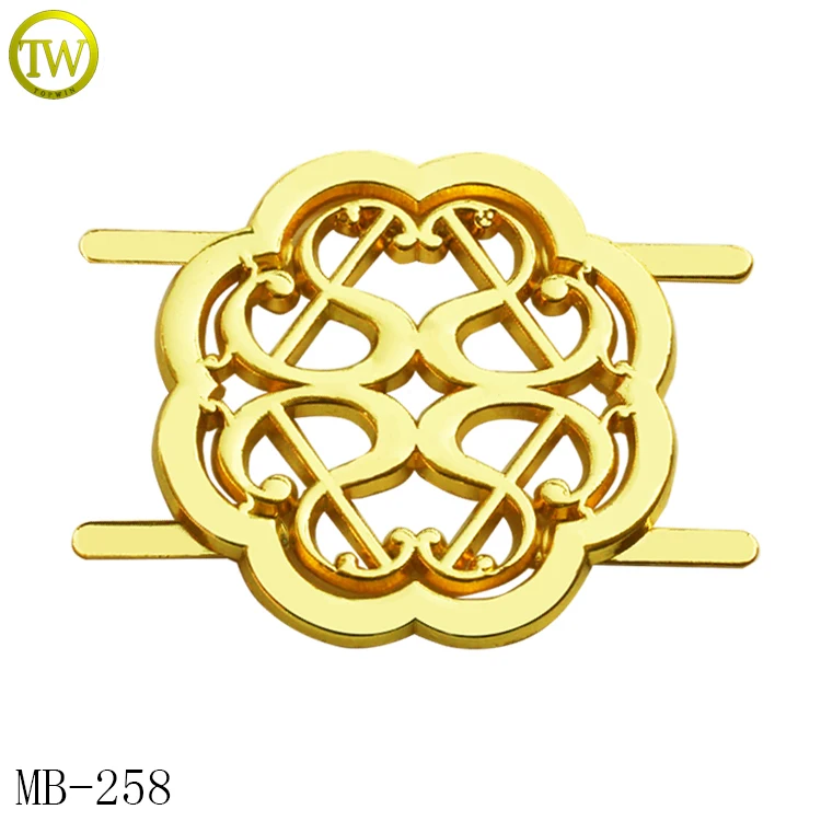 Hot selling flower shape metal name labels hollow logos etched metal hang pins plate for purse