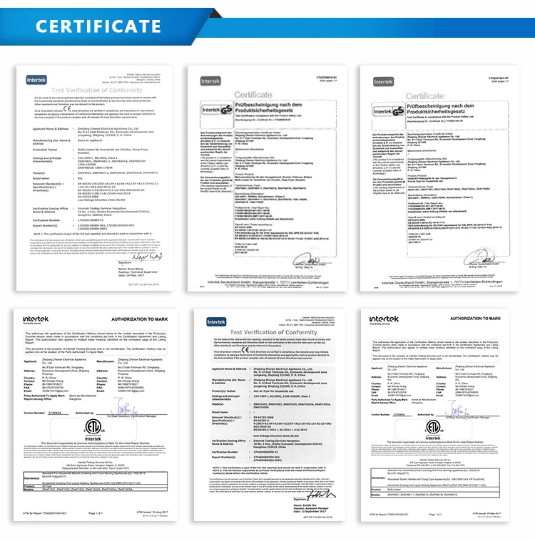 A.CB,CE,EMC,ETL,GS,LFGB,ROHS,BSCI,ISO 9001 is available if you need.