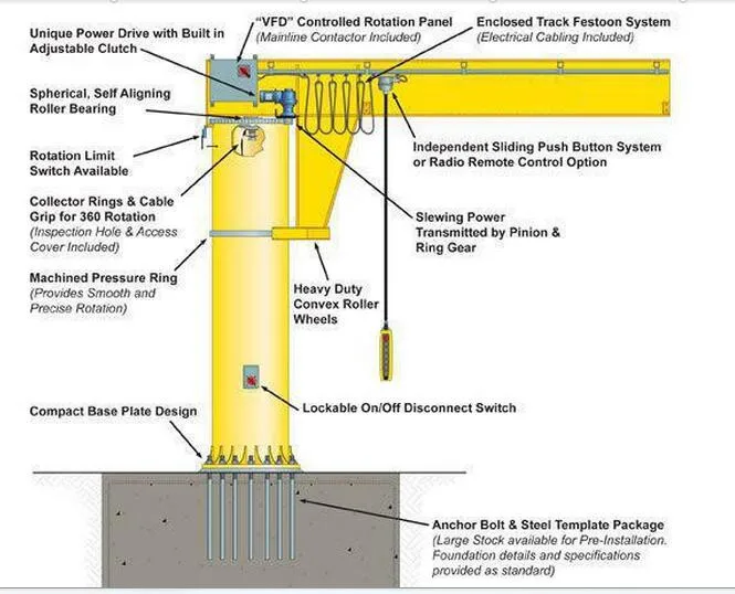 pillar rotary arm crane safety features