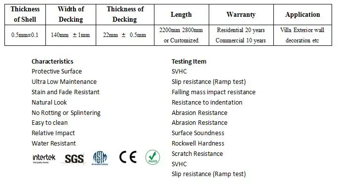 A:WPC products are environmental friendly and 100% recyclable. WPC products are anti-UV, waterproof, moisture-proof, mothproof and anti-mildew, fire resistance. WPC products has no maintenace cost, they are no need for painting and other special maintenance.
