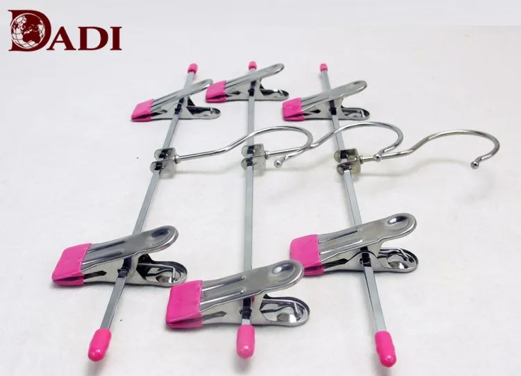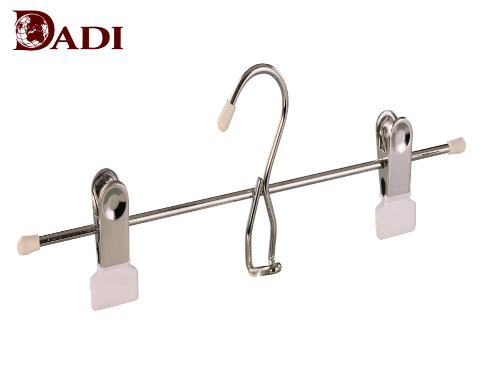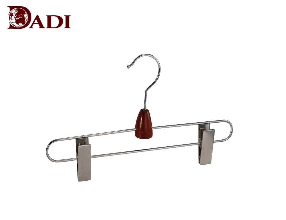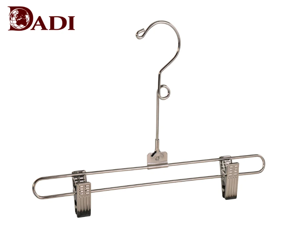This Chrome Metal Wire Clothes Display Hanger with 2 Clips is made of chrome and PVC coating clips. Lenth 36cm.