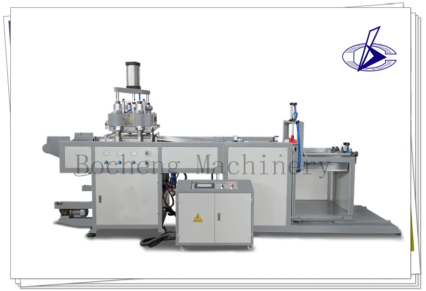 BC-515/580B Semi-Automatic BOPS Plastic Thermoforming Machine is is a combination of mechanical, electric and pneumatic components, and the whole system was controlled by micro PLC ,which can be operated in man-interface .it combines the material sending ,heating forming ,shaping into one process .it has three operation models :"manual ,semi-automatic ,