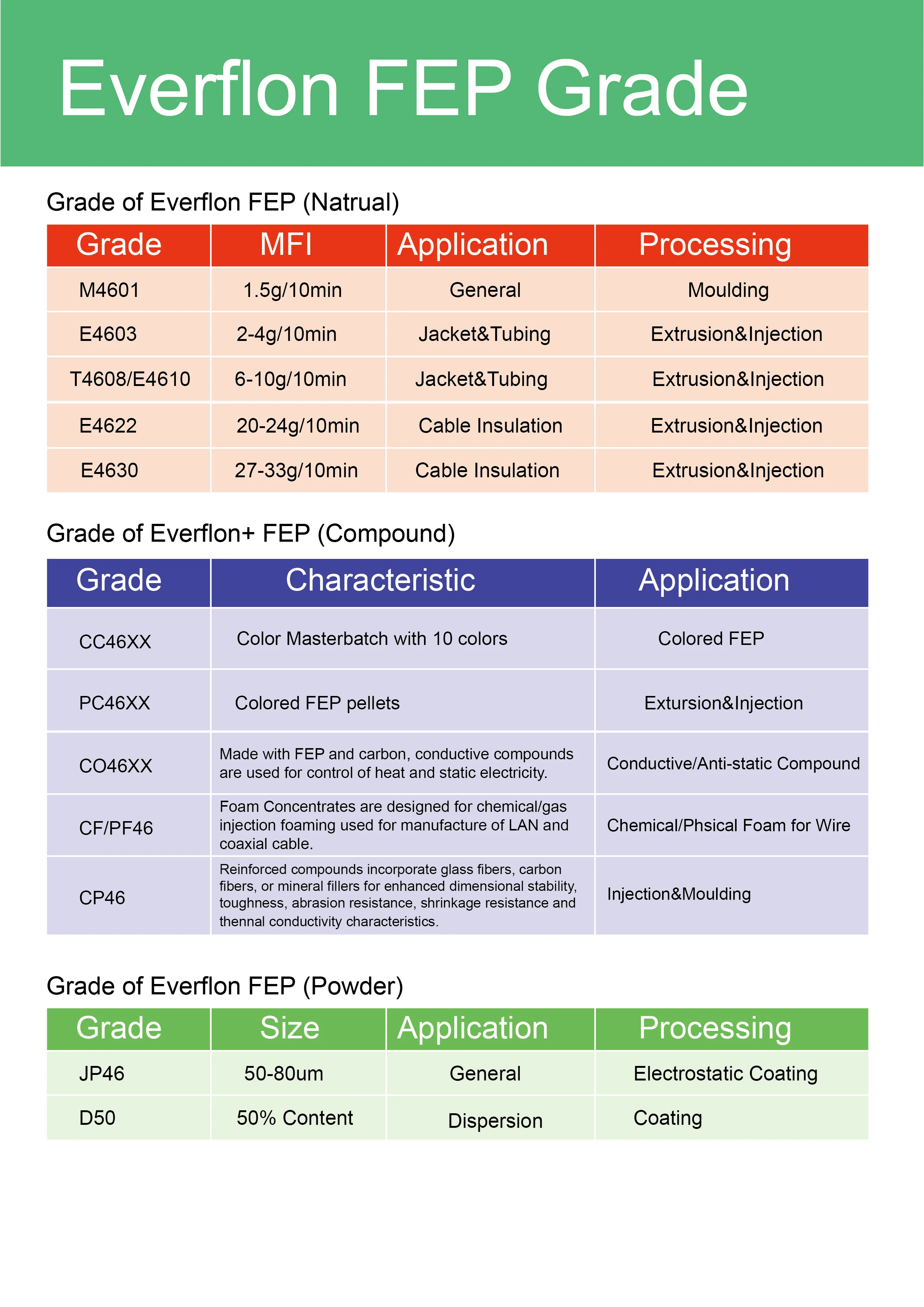 Solids Content | % FEP by weight | 50 |
