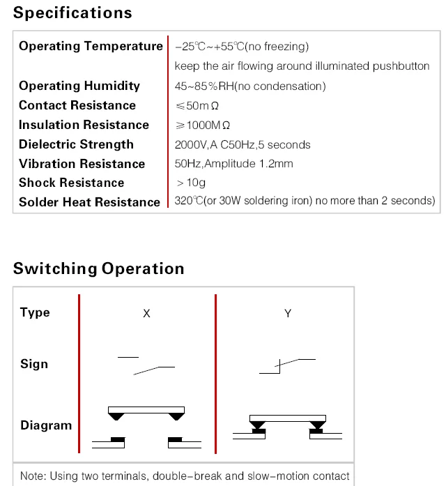 Switch rating: 2A/36VDC