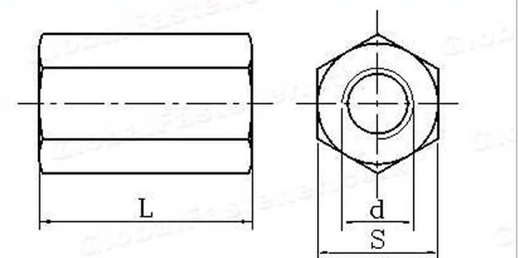 A coupling nut also known as extension nut is a threaded fastener for joining two male threads, most commonly a threaded rod, but also pipes. The outside of the fastener is usually a hex so a wrench can hold it. Variations include reducing coupling nuts, for joining two different size threads; sight hole coupling nuts, which have a sight hole for observing the amount of engagement; and coupling nuts with left-handed threads. These are used to make up long rod assemblies from shorter lengths of rods.The rods are threaded into the coupling nut for a certain distance. It is given a plain finish. It is either cold drawn or hot rolled depending on the bar stock used. Coupling nuts threaded with two different thread sizes and profiles are called reducing coupling nuts.