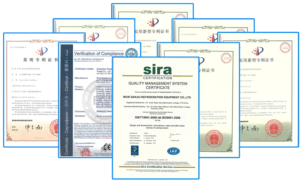 GHM Series are of capacities from 30 to 366 nominal tons, can work in series as a group for larger capacities. Casing made in special alloy coated steel or stainless steel, Heat exchange coils made in stainless steel or red copper, Wet deck fills made in PVC. All raw materials are of high industrial grade, with superior corrosion resistant features. GHM towers are designed of high efficiency but lower initial and long term costs, easy and economical installation and maintenance. The towers dimensions can be customized to suit standard containers or part icular project conditions. GHM towers are widely applied in different fields, to cool circulating water, oil or other process fluid for HVAC System, Compressors, Furnaces, Data Centers, Ground Source Heat Pumps, Power Generators, Transformers, Converters, Refrigerators, Food and Chemical Production Lines, etc.