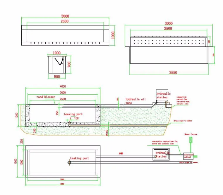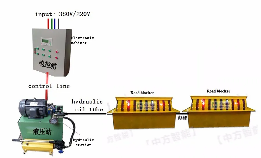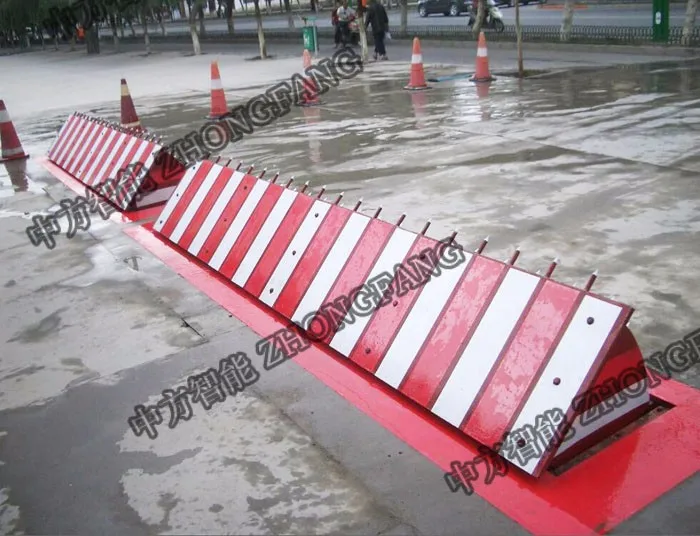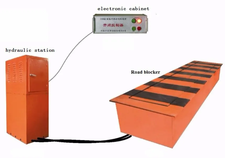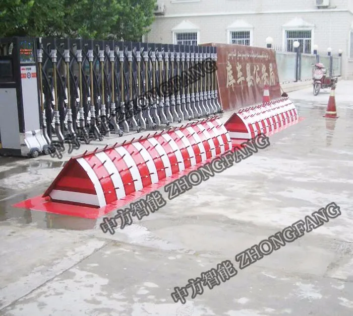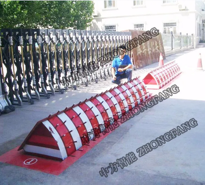 The whole length of road block (Tip and LED light optional)1000~6000mm, rising intercepted surface: 1000~6000mm, rising height : 350~800mm It is the rotary hydraulic road block machine which used to 1000mm~9000mm road vehicle access port. It can be linked with gate control system or used separately . The whole system is made up of main machine case , hydraulic transmission station and electronic control . We can offer custom made service to meet client ‘s requirement 。It is a special design used to prevent unauthorized vehicle from breaking into sensitive areas; practicability, reliability and high safety