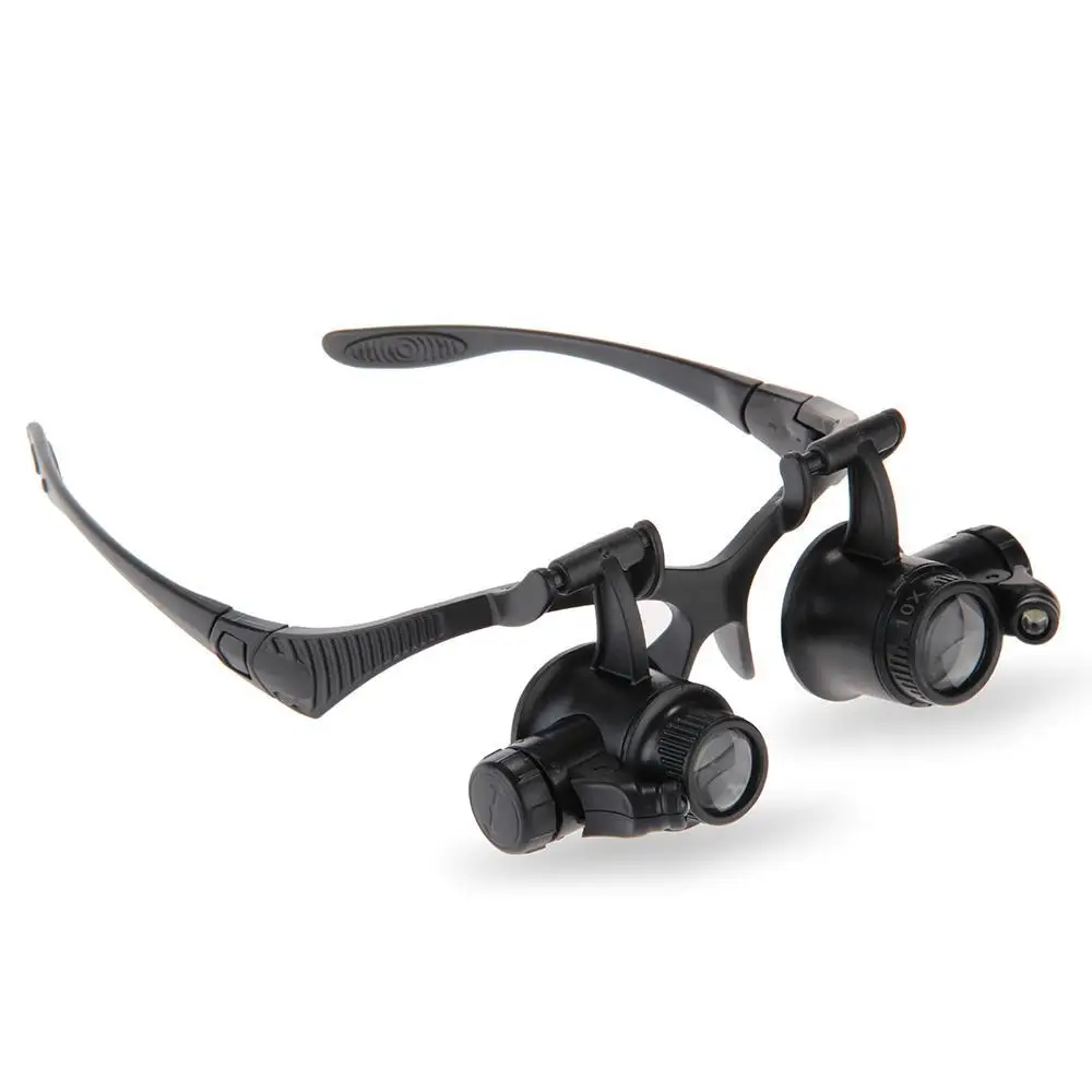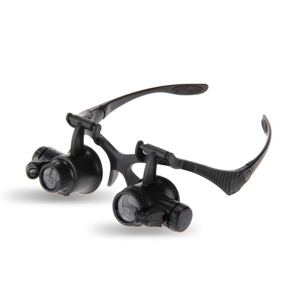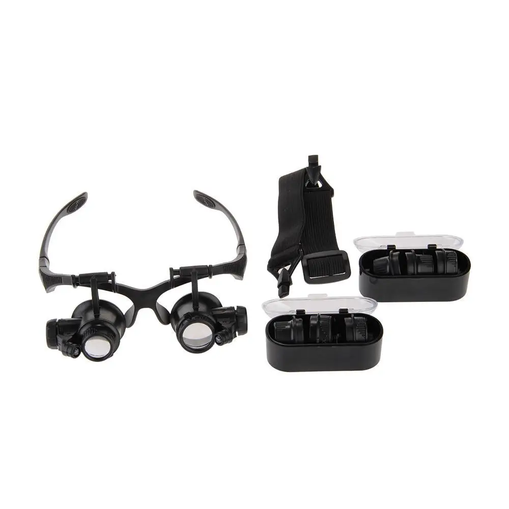 10X/15X/20X/25X Portable Head Wearing Double Eye Magnifying Glass 2 LED/8 Lens Jewelry Watchmaker Magnifiers Eyewear