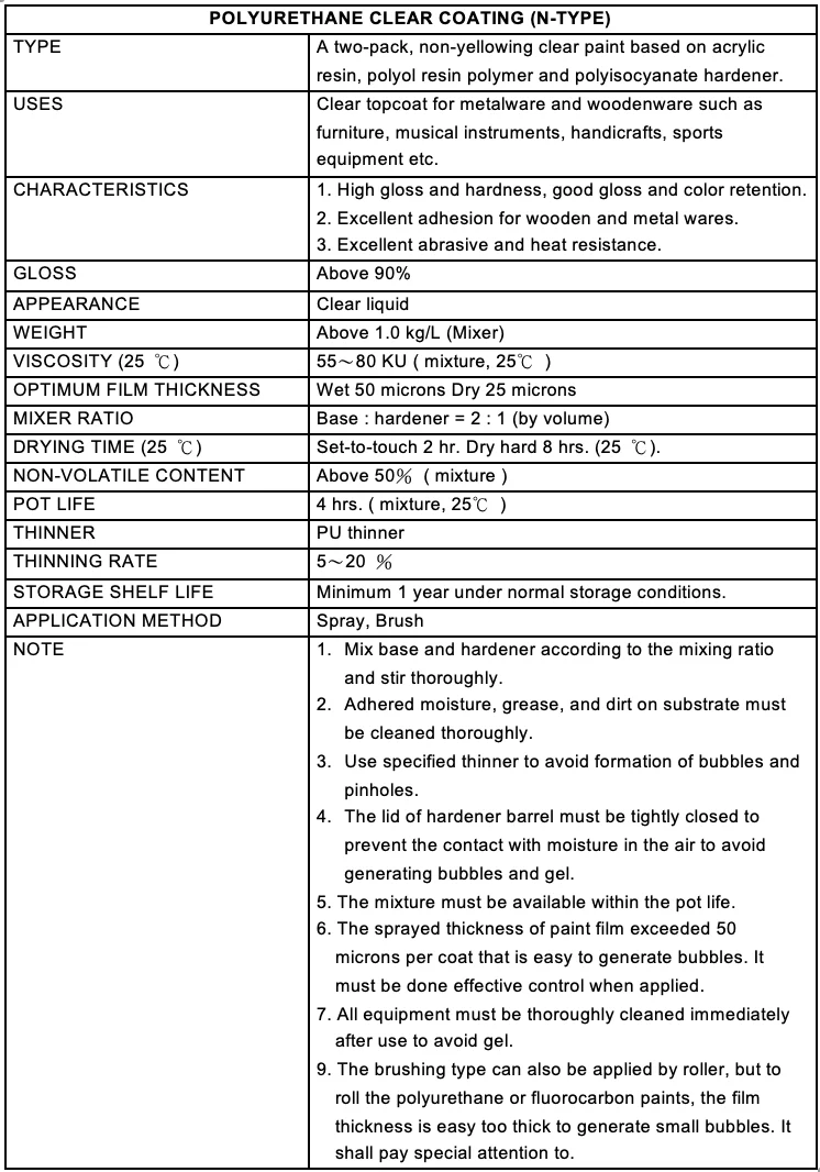 (N-TYPE) MADE IN TAIWAN VARNISH COATING BRANDS POLYURETHANE VARNISH