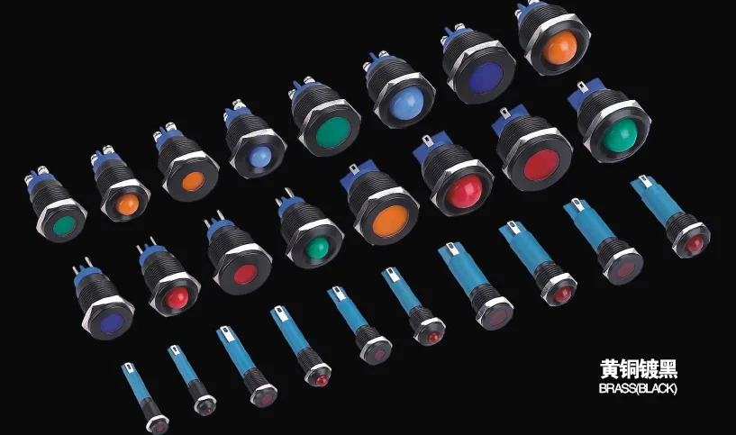 Industry leading brand ONPOW (CE,ROHS) 16mm flat head LED pilot lamp pin terminal black housing indicator