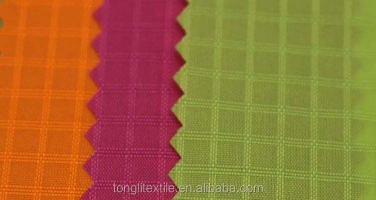 Colorful 210D three lines 0.5 grid pu coated nylon fabric china for upscale cloth lining