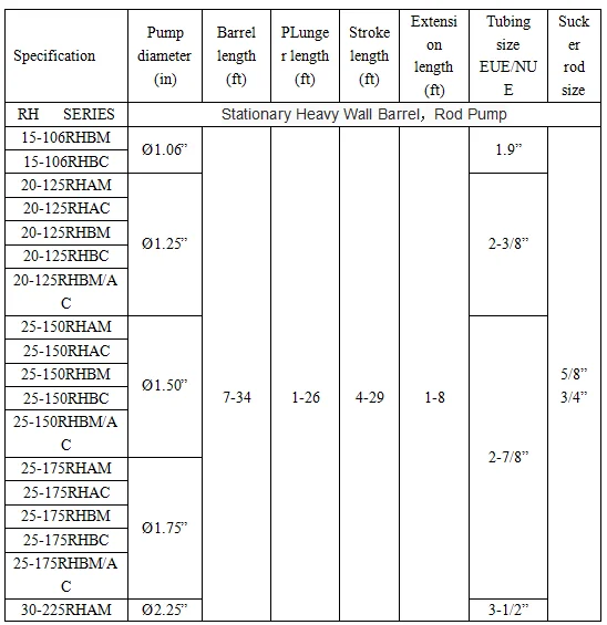 Sucker rod pump is equipped with a seating nipple(there are two seating nipples in API-RHBM-AC) , seating nipple connection is on the tubing string, down to the bottom of the well with the tubing string. Plunger assembly connection is on the sucker rod string and with the pump overall down to seating nipple position together , pump with fixed inside the seating nipple.Plunger assembly with the sucker rod string up and down reciprocating movement to achieve pumping work.