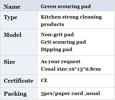1.Eco-friendly, 2.Good quality,competitive price . 3.Customized size can be done. 4.Multistage for kitchen. 5.Best Choice for your scouring/scrubbing needs 6.Scouring pad for general purpose cleaning 7.Material:polyester or nylon, 8.Specification:15*10cm, thickness is 0.5cm,0.6cm,0.7cm,0.8cm,0.9cm,1cm 9.Packing: 10pcs/paper sleeve,100sets/ctn 10.Color: green or colorful 11.OEM and ODM are welcome.