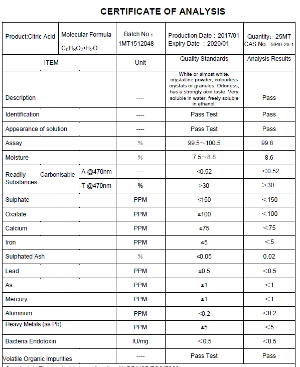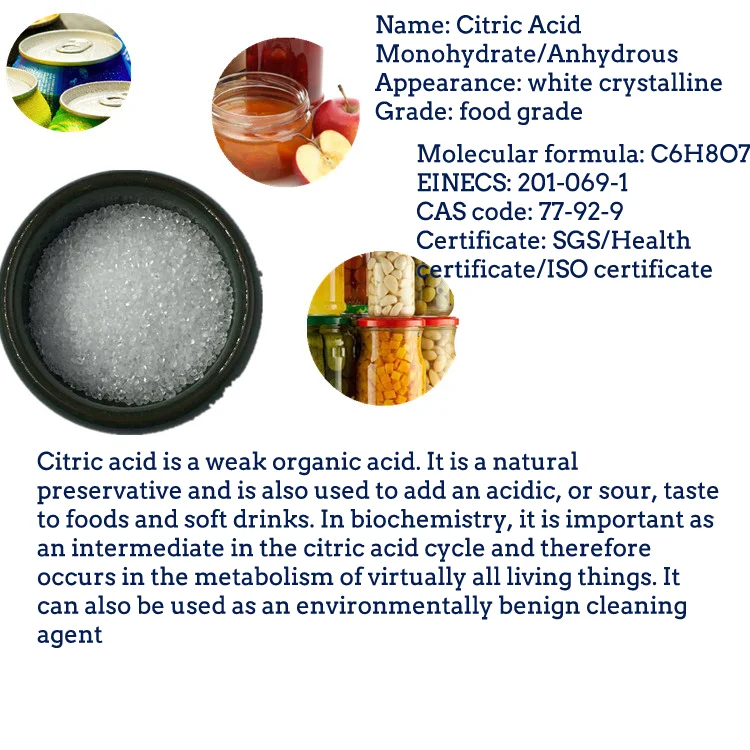 be used as a cooking oil antioxidants. Anhydrous citric acid used in solid drinks a lot.